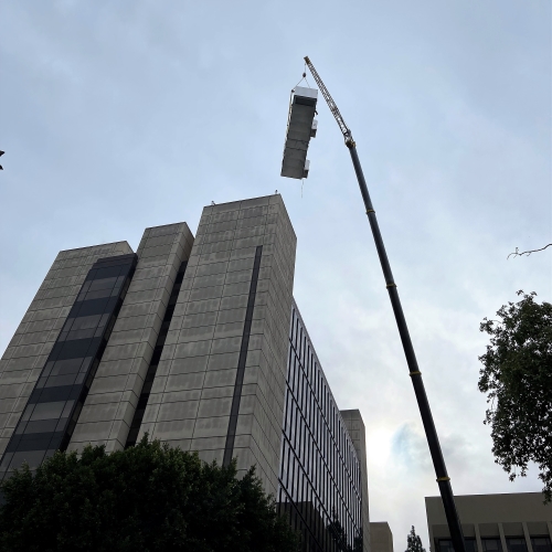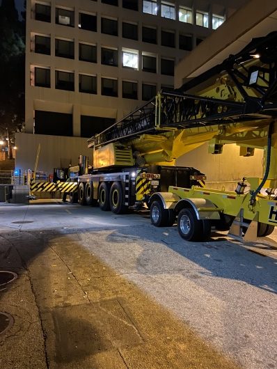 At the NTT, the crane pick was recently completed for the 1st of 4 permanent air handler units being replaced.